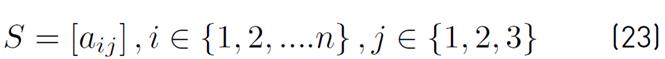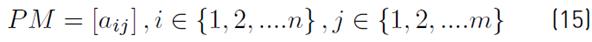Equations 22 and 23 represent the matrix PM and its dimension.