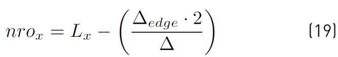 The total number of points nroxy is calculated through of Equation (18); it is analyzed on a surface S. The subscripts x, y are points with respect to the X and Y axes. The definition of the surface S is performed in the X, Y, Z coordinates system. Equations (19) and (20) correspond to the number of points in X and Y for longitudinal and transverse distances Lx/y , these points are measured from the edge to the end of the surface. The measurement separation is called delta (edge . Separation delta ( is the new length on the surface and the first coordinate to measure height Z.