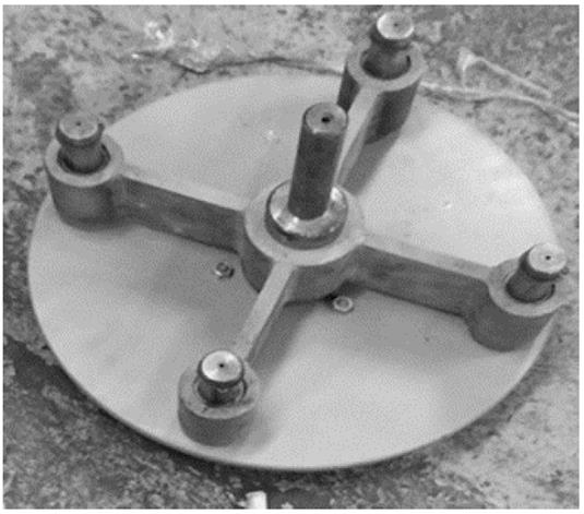 The polishing process was carried out with a specific tool designed to maintain a uniform pressure in the contact area. A disc supported by four columns with springs was used (see Figure 2].