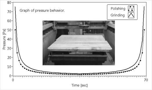 Experimentally, for continuum grinding and polishing process, the acceleration and deceleration during the tool path on the workpiece affect the flatness of the working surface (see Figure 5], generating higher pressures producing a higher material removal rate in these places. The distribution of tool pressures on the surface for acceleration and velocity changes must be determined because these facts affect the quality of the flat surface.
