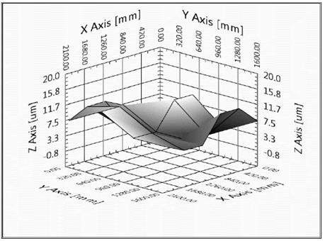 Deductive result is achieved through measure equipment of high precision and the method described knowing the state of the pattern surface (PS) shown in Figure 9; this flat PS (2x1.6m) has an error tolerance of ±10µm .