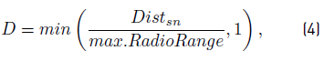 Where Dist sn is the distance between the sender and its neighbor and max.RadioRange is the maximum communication range over the wireless link.