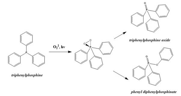 The formation of triphenylphosphine oxide (OPPh3) was determined with UV-Vis spectroscopy, measuring the P=O band ( n⟶ π ∗ ) at 265 nm [18] and the PPh3 band at 258 nm [19]. The kinetic study was performed varying the initial concentration of PPh3, photonic flux, and quantum yield.