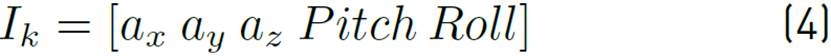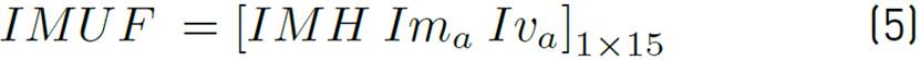 With IMH = [AI VI SMA EVA AAE ARE], Im a = [m ax m ay m az m ar m ap ] and Iv a = [v ax v ay v ar v ap ]. Where m aw and v aw is the arithmetic mean and variance of the rectangular and spherical components of I k , with w = {x, y, z Pitch, Roll}. For more detail of the process of these descriptors, refer to[7].