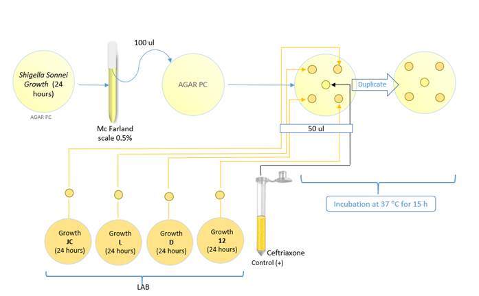 Figure 1 Diagram of the antimicrobial activity test with LAB cells against Shigella sonnei ATTC 25931