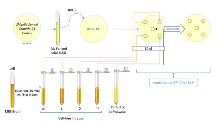 Figure 2 Diagram of the antimicrobial activity test in the absence of LAB cells (acid and neutral pH) against Shigella sonnei ATTC 25931