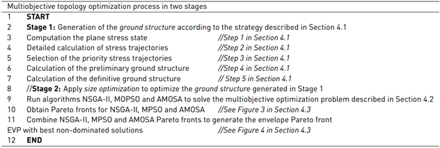A pseudocode summarizing the proposed multiobjective topology optimization process is presented in Table 1.