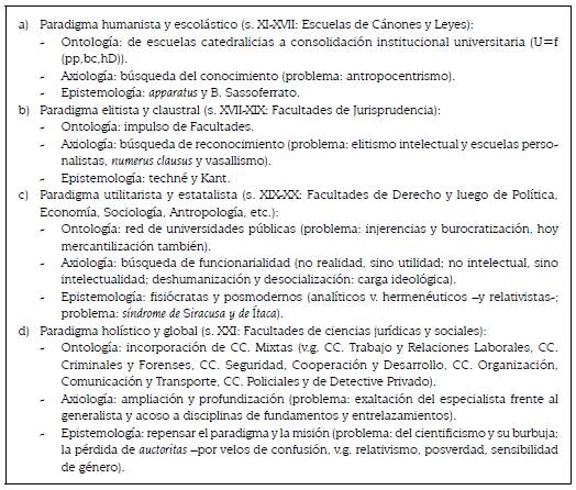 Tabla 1 Ciencias jurídicas y sus ciencias sociales herederas
