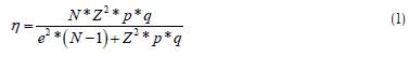 η: Sample size; N: Population size; Z: confidence level; p: Probability of success; q: Probability of failure; e: Margin of error