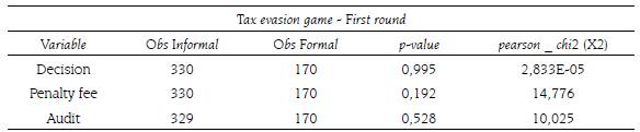 The objective of this game was to observe the decisions about payment of taxes and to test, if there were differences in decisions between the participants with formal and informal jobs. The tax game had two rounds and two audits. The results of each round are presented below.