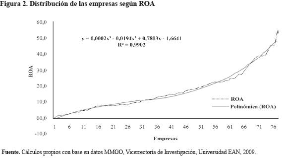 Los datos necesarios para el presente ejercicio provienen de una muestra de 80 pequeñas y medianas empresas de las cerca de doscientos a las cuales se les ha aplicado el MMGO, ubicadas en la ciudad de Bogotá y su zona de influencia económica, diagnosticadas mediante el modelo y sus correspondientes estados financieros con información necesaria para el cálculo del ROA.