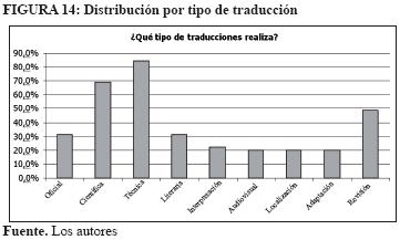 Igualmente, puede observarse que, aunque la traducción técnica y científica son el eje profesional de los traductores en Colombia, hay una variedad importante de tipos de traducción, lo que muestra que poco a poco el mercado comienza a crecer.