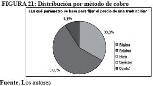 Respecto de la forma de cobrar, prefieren hacerlo por palabra con respecto al texto de partida si bien el cobro por página sigue siendo una práctica común.