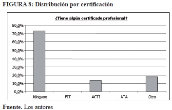 Esta pregunta demuestra el poco interés de los traductores por especializarse y por unir fuerzas para posicionar el mercado de la traducción. Lastimosamente, el 73,3% de los traductores en Colombia no tienen ningún certificado profesional, no solo por la falta de interés, sino por la gran cantidad de requisitos necesarios para obtener uno, sin mencionar los precios que se deben pagar.