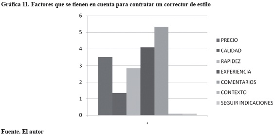 Al analizar, las empresas que utilizan la corrección de estilo de documentos en español, éstas muestran que los aspectos de precio, calidad y rapidez en la entrega son fundamentales, mientras que los aspectos de experiencia del corrector y comentarios recibidos del corrector de estilo o por parte de la propia empresa no son relevantes. De la misma forma, al evaluar el ejercicio de la traducción escrita y su producto final, los aspectos de precio, calidad y rapidez en la entrega son muy significativos, pero la experiencia del traductor y los comentarios recibidos del corrector de estilo o por la propia empresa no son tomados en cuenta nuevamente.