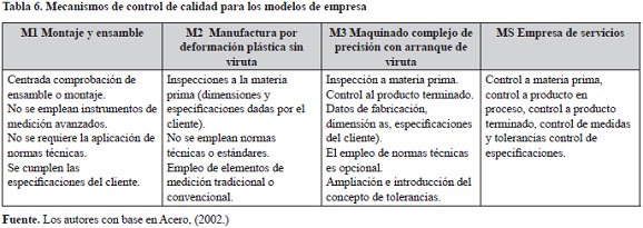 Mecanismos de control de calidad. Ya que los productos pueden tener un amplio grupo de características para ser controladas, la empresa se debe concentrar en aquellos aspectos que sean estándares de la industria para hacer integración e intercambio. En la tabla 6 se presenta un conjunto de características de los mecanismos de control.