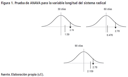 A continuación, se muestra la representación gráfica de la prueba de ANAVA para la variable longitud del sistema radical como resultado de la aplicación del modelo (Figura 1).