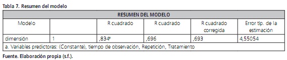 - Se generó un análisis hacia atrás, eliminando las variables de menor nivel de incidencia y mayor significancia del sistema para el Modelo, con el fin de ajustar y aumentar su nivel R2, que indica la incidencia sobre las variables dependientes (Tabla 7).