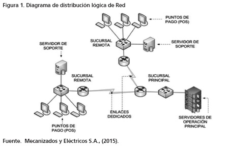 De igual manera, Mecanizados y Eléctricos S.A., ha implementado la arquitectura de red buscando que todas las sucursales con las que hoy cuenta -Norte, Salitre, Pepe Sierra, Plaza de las Américas y Héroes-, se encuentren interconectadas con la central administrativa en donde se realiza todo el procesamiento de la información.