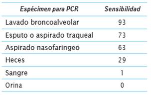 Se ha descrito una sensibilidad que oscila entre 50-79 % dependiendo del tipo de muestra recolectada y del tiempo de recolección en relación con el inicio de los síntomas, con una especificidad reportada en todos los tipos de muestras del 100 %. La frecuencia de resultados positivos también se ve afectada por la severidad clínica, factores de riesgo del paciente, el momento y lugar de toma de la muestra 12,14.