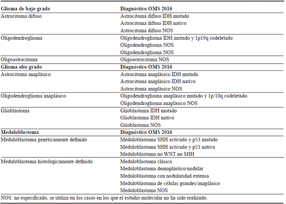 Tabla 1 Clasificación de tumores del Sistema Nervioso Central según la Organización Mundial de la Salud 2016.