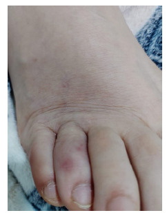 Figura 2 Hombre 50 años con marcas locales de picadura por P. nigriventer en región interfalángica del cuarto dedo del pie derecho
