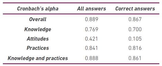 Table 1 Internal consistency of the instrument and its domains according to all responses and only correct responses provided by specialized and general dentists in Colombia, 2018.