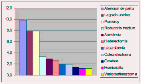 Figura 10. Porcentaje de los procedimientos frecuentes en los procesos
