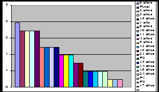Se podría suponer que, entre menos experiencia mayor es el riesgo de ser demandado; sin embargo, se observa que médicos con experiencia de 9 años están en el primer lugar y que la segunda posición está ocupada por un grupo de profesionales entre los que se encuentran los rurales y médicos con experiencia hasta de 15 años (Figura 3).