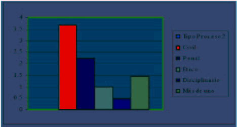 Predominan los procesos penales, seguidos por los éticos y civiles (Figura 7).