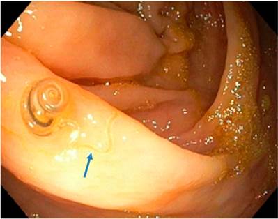 Existen otros 2 datos clínicos que hacen poco probable la posibilidad de que los parásitos observados en la colonoscopia del caso en cuestión fueran T. trichiura. El primero es que el T.