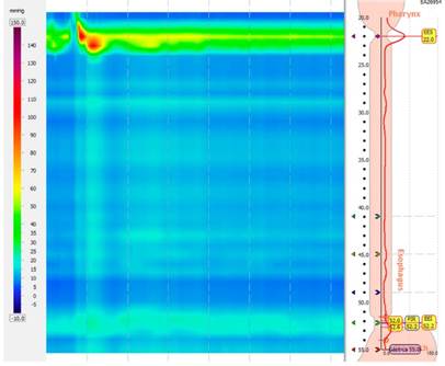 Figure 5 High-resolution manometry. Type I or classic achalasia (with elevated IRP greater than 15 mm Hg and 100 % failed swallowing). Source: Gastroenterology Unit. Hospital Universitario San Ignacio. Bogotá D.C. Colombia.