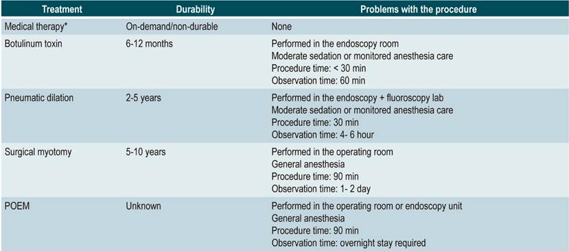 Table 1 Summary of therapeutic alternatives for achalasia3