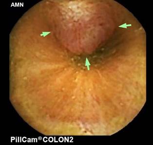 An endoscopic capsule was ordered to rule out other lesions in the small intestine, which confirmed the lesion in the distal ileum, with no other significant findings (Figure 3).