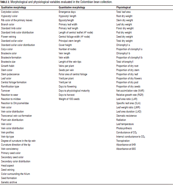 In the present study, a Colombian bean collection was used as a reference for processes of genetic improvement for adaptation, absent the knowledge on its genotypical and phenotypical characteristics. The objective was to integrate different types of descriptors, morphological, physiological and genetic, that allow for the enrichment of the knowledge of the germplasm bank of the country's species, promoting their conservation and use. Isoenzymatic markers and RAPDs were used because they have proved useful in studies on the diversity and the classification of bean types for genetic archives.