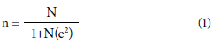 The sample size for each district was fixed according to Yamane's (1967) simplified formula to calculate the sample size: