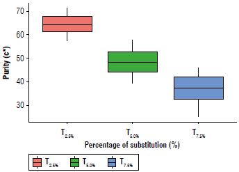 Regarding the calculation of purity (c*), the values decreased as the percentage of substitution increased in such a way that it is affected (Fig. 3).