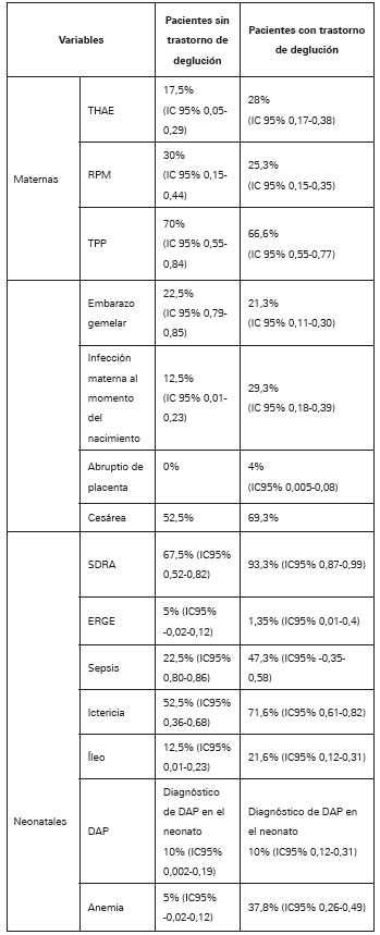 Tabla 1 Variables asociadas a trastorno de succión-deglución