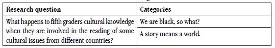 The question that guided this research was: What happens to fifth graders' cultural knowledge, when they are involved in the reading of stories containing cultural issues from different countries?