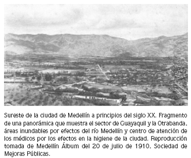 En 1876, el médico Francisco Antonio Uribe Mejía esbozó un diagnóstico del estado sanitario de Medellín. Con una mirada totalmente aerista, Uribe Mejía veía amenazada la vieja Villa por los 'cuatro vientos cardinales'; pero su mayor preocupación eran las áreas suburbanas, es decir Guayaquil, La Asomadera, El Chumbimbo y el Camellón del Llano, en donde sólo vio focos de infección de donde emanaban constantemente 'miasmas pantanosos, efluvios mefíticos, que hacen a la ciudad en ciertas épocas tan malsana como un Nechí o un Nare'.12