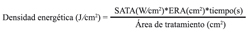 Otro concepto fundamental en la dosificación del UST es la densidad energética, puesto que considera el área de tratamiento, lo cual es importante teniendo en cuenta que esta zona podría recibir variaciones en los niveles de energía debido a la velocidad, el recorrido de la aplicación y en si a la demarcación de la misma.