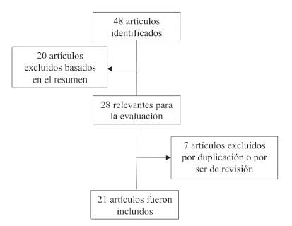 Figura 1 Flujograma de la búsqueda y selección de los artículos incluidos en la revisión sistemática tipo narrativa.