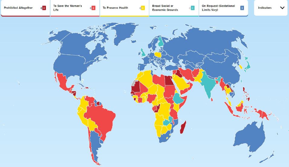 Figura 1 Mapa mundial sobre el estado legal del aborto en el mundo Tomado de httpsreproductiverightsorgworldabortionlaws Autorizada su publicación por Center Anticonception Rights