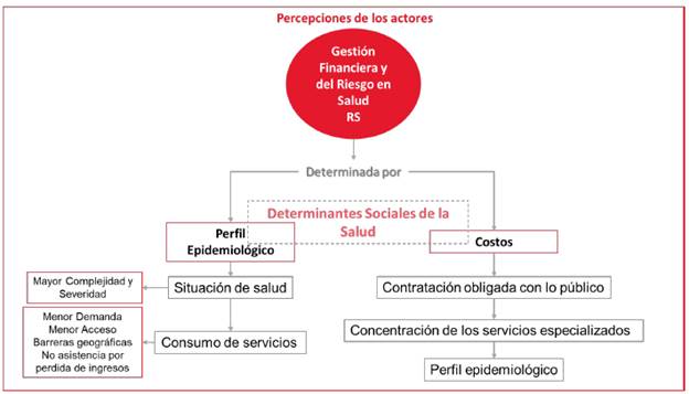 En síntesis, hay un hilo conductor común para los entrevistados y tiene que ver con el rol de los Determinantes Sociales de la Salud (DSS) como ordenador principal de los procesos salud-enfermedad y atención en este régimen. A su vez, estas condiciones de vida son las que determinan de manera importante el perfil epidemiológico, acceso, costo de la atención, y en general, la forma cómo se consumen los servicios de salud por la población afiliada.
