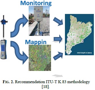 The ITU is the is the United Nations specialized agency responsible for issuing recommendations on telecommunications. It has different series by subject, in the specific case of the NIR, it is part of the K series, which is in charge of protection against radio fields interference. Recommendation K52 initially was published to guide on taking specific measures to determine radiation levels emitted by each of the radiation sources. In 2011, recommendation ITU-T K83 was issued, this recommendation provides long-term measurements and in real time, the measurements are presented on a map for a web site; Fig. 2 illustrates the system proposed by the recommendation K83.