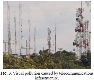 In addition to the possible effects on health by NIR causing community fears, the damage to the environment is also found and it is caused by the visual pollution as illustrated in Fig. 3. Given this situation, municipalities create barriers in their development plans, to the proper deployment of infrastructure to ensure quality standards required by users.