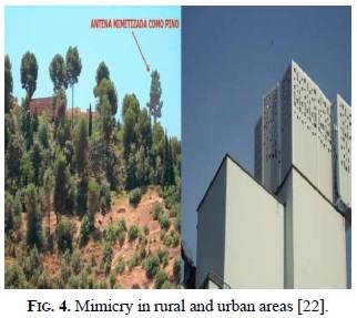 Uninstalling or relocation infrastructure is not necessary to counter the visual pollution; there are mechanisms of mimicry that can significantly reduce the environmental pollution, caused by the disorderly unwinding of this infrastructure [21]. Fig. 4 illustrates examples of infrastructure mimicry in both rural and urban areas.