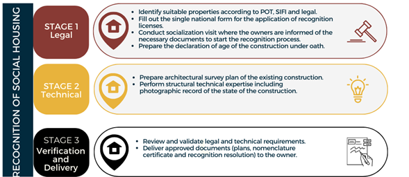 In view of the above, the purpose of this article is to make a descriptive analysis of Crowdmapping implementation through platforms that aim to create collaborative maps in order to define the viability of including it as an application proposal in VIS recognition processes, necessary to legalize informally built housing. It is proposed to characterize the VIS recognition process and develop a proposal within the administrative management performed by urban planning offices as a solution to collect, visualize and analyze geolocated information in a more efficient way, reducing the internal response time in obtaining VIS recognition licenses.