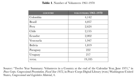 The Peace Corps is a volunteer project established in 1961 by John F. Kennedy that has sent young Americans abroad for two-year stints to collaborate in community development in urban and rural areas in the Third World. Some twenty thousand volunteers arrived in South America in the 1960s, one of the regions of the world that received the largest number of volunteers during that decade. This happened within the framework of U.S. interventions in Latin America after the Cuban Revolution, which had different expressions such as the Alliance for Progress, military interventions, cultural projects and diplomatic efforts, among other things.1 Their presence in remote areas was part of what Alan McPherson has described as a process of increasing North-South intimacies,2 which grew in size during the Cold War, a conflict in which not just violence, but the logic of modernization through social and economic development was also crucial in Latin America. Indeed, the challenge of development provided a key battlefield in which the United States and the Soviet Union both strove to impose their respective visions of how to modernize the world. Demonstrating the efficacy of their contending ideologies became a matter of crucial importance.3
