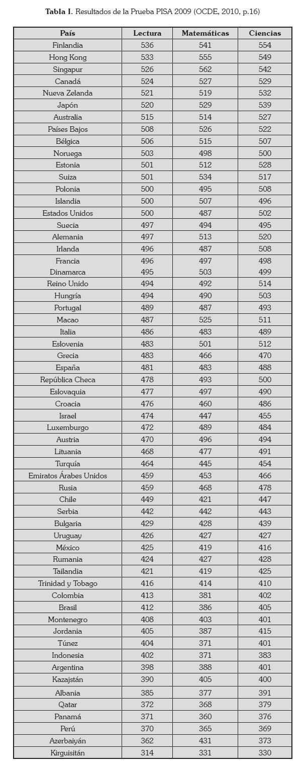 21. Organización para la Cooperación y el Desarrollo Económicos-OCDE (2010). Resultados del Informe PISA 2009: Lo que los estudiantes saben y pueden hacer. Rendimiento de estudiantes en lectura, matemáticas y ciencias. España: Santillana. [ Links ]